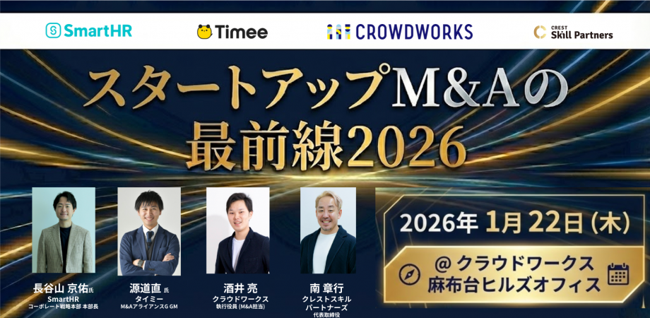【CSP×クラウドワークス共催】スタートアップM&Aの最前線2026に、当社M&A担当執行役員 酒井亮が登壇いたします。
