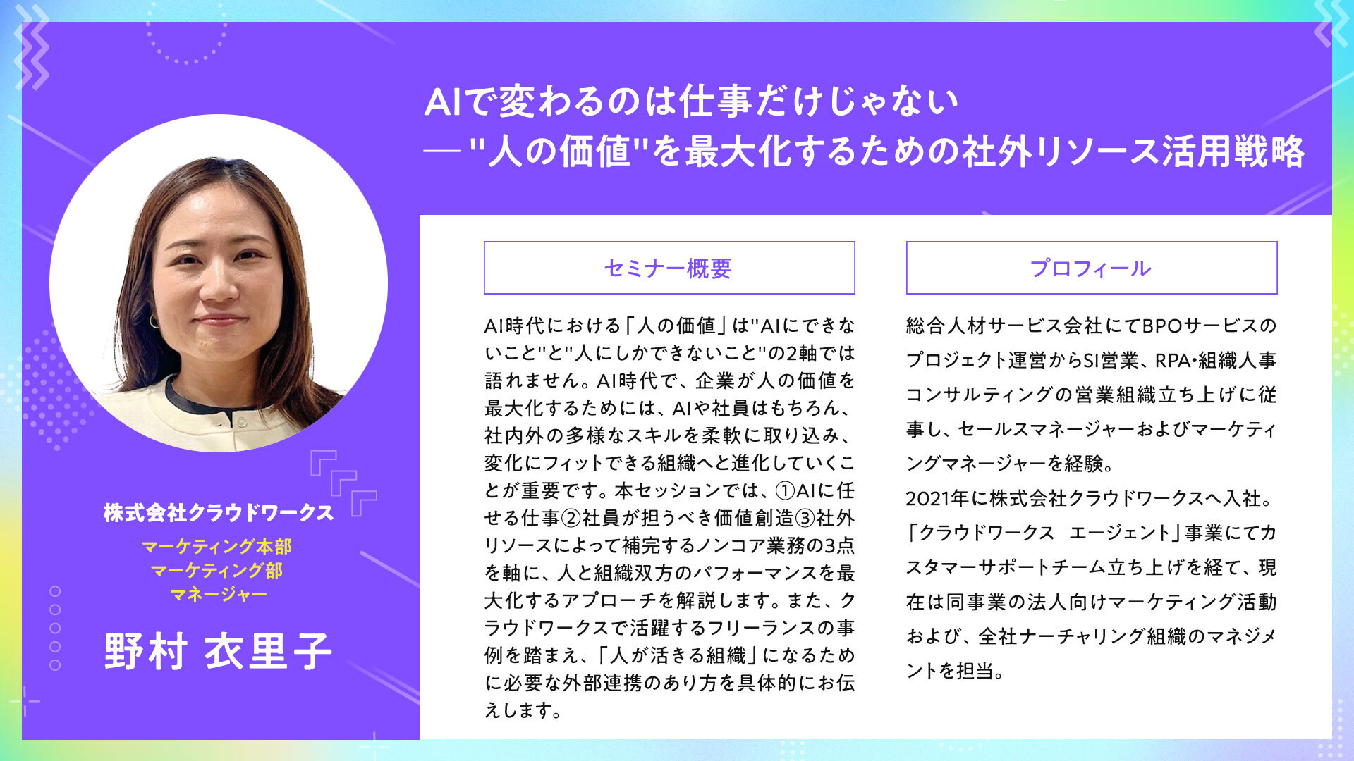 ・登壇者 :株式会社クラウドワークス マーケティング本部 マーケティング部 マネージャー 野村 衣里子