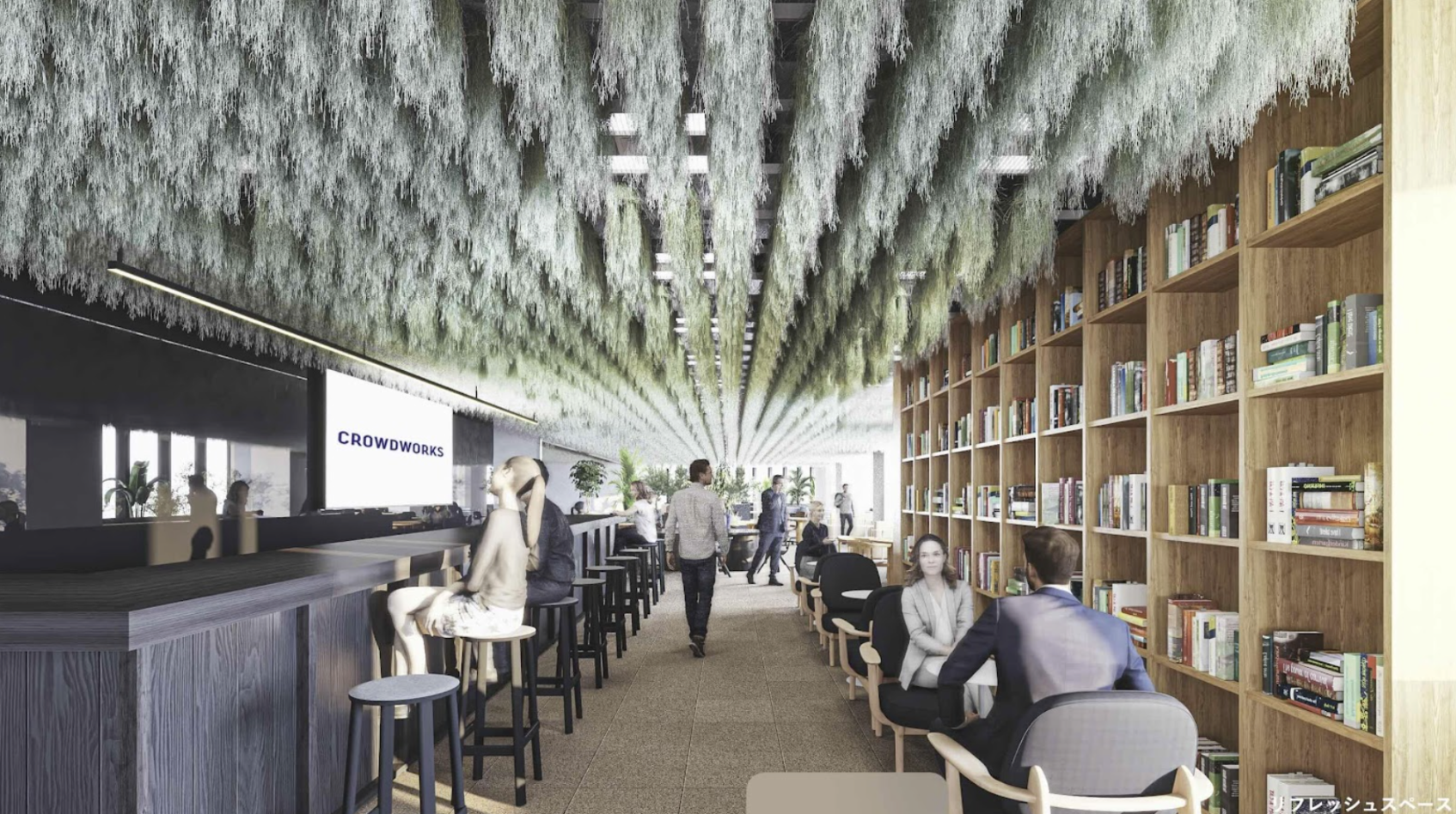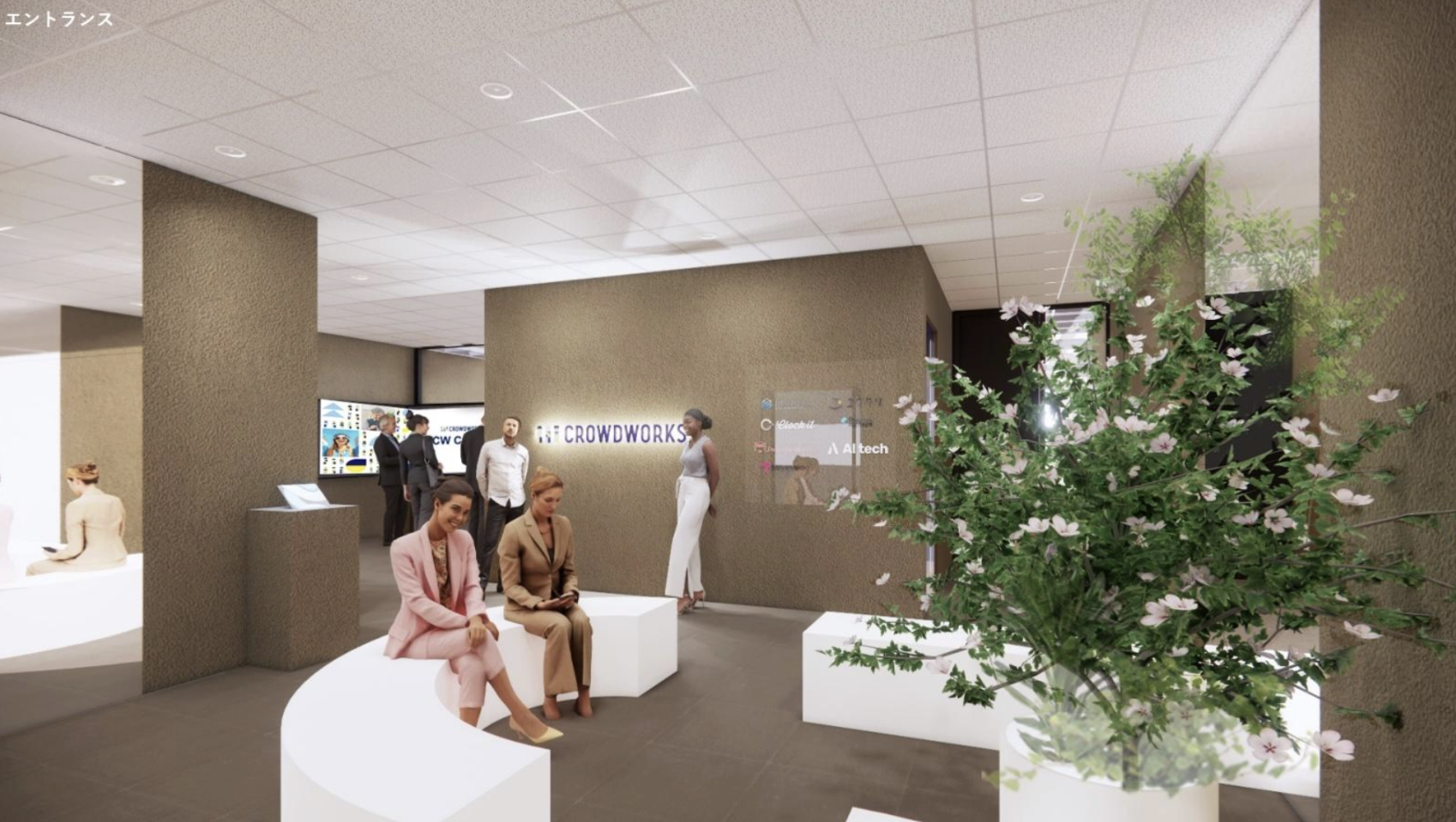 西畠さんは、直近の大阪・関西万博 フランスパビリオンでの樹齢1000年を超える長寿オリーブに、アンチエイジングに有効な微生物をかけ合わせたテクノロジーの展示でも話題になっています。クラウドワークスのビジョン「人とテクノロジーが調和する未来を創り、個の幸せと社会の発展に貢献する」とも共感する部分が多くあり、今回のオフィスデザインをご一緒することになりました
