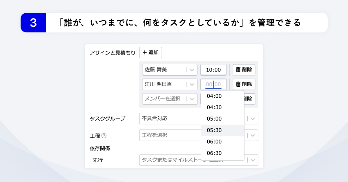 3. 「誰が、いつまでに、何をタスクとしているか」を管理できる